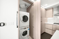 Stunning SE FACING SUB-PENTHOUSE at PARK ESTATES II with expansive views including Mount Baker, featuring soaring over-height ceilings and floor-to-ceiling windows, the home is filled with brilliant natural light from the morning sun. This exceptional layout includes two ensuite bedrooms, a high-end kitchen with fully integrated Bosch appliances, a 5-burner gas cooktop, with built-in shelving and storage throughout. Step outside onto the wraparound balcony and take in the expansive city and mountain vistas. Enjoy five-star amenities, including a state-of-the-art fitness centre, golf simulator, movie theatre, party room, bowling alley, swimming pool with hot tub, sauna, indoor gym, and more. Call to book your private appointment! Open House Sat Nov 15 2-4pm.