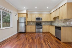Inside quiet unit, rarely available, 2 storey townhouse with side by side double garage in McLennan North. Well kept by original owner, bright and spacious with lots of windows, master bedroom with walk-in closet, 9' ceiling on main floor, maple cabinetry with soft closing doors, granite countertops, stainless steel appliances, brand new washer & dryer, brand new microwave, gas range, kitchen with eating area, electric fireplace, hardwood flooring, hot water baseboard radiant heating, backyard with patio. Low maintenance fee $260.00. School catchment: DeBeck Elementary and Palmer Secondary. Minutes away from shopping centre, transit and restaurants. Open house: Saturday, Feb 7th from 1-3pm.