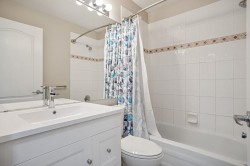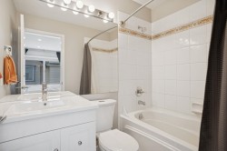 Renovated in 2023, 2 bed + den & 2 bath Townhome in Central Richmond is move-in ready! Spacious 1,146sqft family home PLUS 180sqft unfinished area on lower level (perfect for flex area/many options). Bonus, new roof (2025) paid by Seller ($29k). Updates incl NEW: washer/dryer, fridge, stove, hood fan, flooring (kitchen, bathrooms & landing), custom organizers in closets, built in storage on main, recessed lighting (upper floor), new bathroom vanities & toilets, window blinds, & smart thermostats. Main living area is bright & spacious w/9' ceilings & large windows. Forced air heating (lower & main floors), electric baseboard heating (upper). Low monthly maint fee of $261.87! Walk to Minoru Park, Aquatic Ctr, Library, Richmond Ctr, Schools & public transportation.