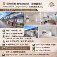 Spires Gate by quality builder Alabaster Homes an award-winning Westside townhome developer which is an elegant Tudor style townhomes centrally located in Richmond, just 7 min't walk to Richmond Centre, shopping, dining, recreations and Skytrain Station, Cook & KPU. This 3 bedrooms & 3 bathrooms & den unit features air conditioning, well layout floor plan, rooftop deck with access from the primary bedroom where you can watch the sunsets, full size washer and dryer, marble tile bathroom floor and backsplash, high efficient tankless gas hot water heater, air direct access to the parking lot with 2 parking and 1 locker. Turnkey 3-year-new townhouse Tenant-occupied, generating $3,800/month rental income — immediate cash flo — motivated seller! Please call listing agent, Wechat lilyli34567.