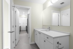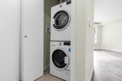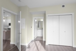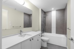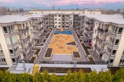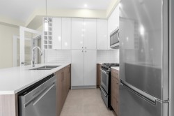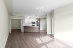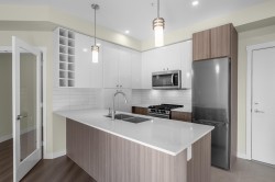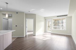 Bright & spacious 1 bedroom + large den unit is ready for immediate move-in. The den features double French doors & is generously sized, making it perfect for a second bedroom or home office. The open-concept kitchen is beautifully finished with two-tone cabinetry, stainless steel appliances, a gas range, & quartz counters. Enjoy the large, fully covered balcony with a natural gas hookup for year-round BBQs and a lovely southeast exposure overlooking the central courtyard. Comes with 1 secure parking with built in electric car charger. Located in Hamilton Village in East Richmond, just minutes from Queensborough Landing, Walmart, Tim Hortons, Costco, and more. The location also offers quick & convenient access to North Delta, Surrey, Burnaby, New Westminster and Vancouver.