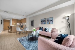 Welcome to this move - in ready home at BERLELEY HOUSE BY POLYGON. This thoughtfully designed 2 bedroom, 2 bathroom residence offers a bright and comfortable living space with 9 foot ceilings, air conditioning, and a modern open concept kitchen equipped with a build-in fridge, premium appliances, and engineered quartz countertops. A spacious and practical balcony extends your living area-perfect for morning coffee or relaxing evenings at home. Located in a friendly and convenient neighbourhood, with shopping, dining, and daily essentials just steps away, this is an ideal home for first-time buyers or small families looking for comfort and ease of living. OPEN HOUSE SAT & SUN 2PM-4PM FEB 7 & FEB 8