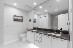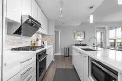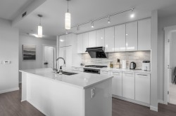 Absolutely immaculate and air-conditioned NE CORNER 3 bedroom condo w/ 2 full bathrooms and 2 full-sized EV SxS parking spots! With 1120 SF of spacious living, this home features an open gourmet kitchen w/ island, quartz counters, KitchenAid & Fisher Paykel SS appliances, new Fotile hood fan, brand new LG washer/dryer, laminate floors, upgraded LED pot lights in baths, window screens and great covered balcony. Comes complete w/ 2 lockers and geothermal heat pump for heating and cooling. Residents have access to the “Trafalgar Club” with a private lounge, gym, pool tables, ping pong, music & meeting rooms. All this in a super central loc that’s just steps to Walmart, restaurants, banks, shops, parks and buses or a quick drive to Aberdeen, Yaohan, Lansdowne or Richmond Centre malls.