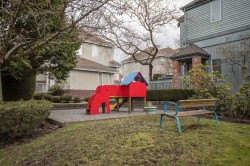 This charming 2-bed + flex room townhouse is ideally located in the Riverdale neighborhood, just steps from Dover Park. A cherry blossom tree-lined walkway leads to the front door, offering a warm and welcoming entrance. Inside, you'll find a spacious layout with 9-foot ceilings, Luxury Vinyl plank flooring, and north/south exposure, providing abundant natural light throughout. 2 generously sized bedrooms upstairs. The primary bedroom features ample closet space and large windows, while the second bedroom includes a semi-ensuite, making it perfect for guests or a teenager. Dover Gardens is a well-maintained complex within the Burnett High catchment and walking distance to the Oval, community center, restaurants and shopping.