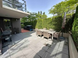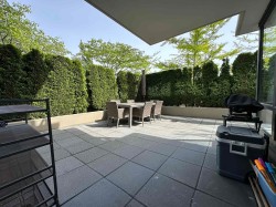 Enjoy peaceful, southeast-facing garden-side living in this special corner home. Located beside the rooftop garden and surrounded by green hedges and blooming cherry trees, this 1,187 SQFT home offers a quiet and private setting. Inside, you’ll find two comfortable bedrooms plus a flexible third bedroom option—perfect for a growing family, home office or guest space. The bright open layout includes a private patio entrance leads to a lovely outdoor area—ideal for weekend breakfasts with family, watching the kids play, or simply enjoying a quiet coffee with a friend. Strata fees include gas, water, and garden care. With walking trails and a playground just steps from your door, this home offers relaxed living in a friendly, nature-filled community. Video link: https://youtu.be/dU8igqGkkW0\