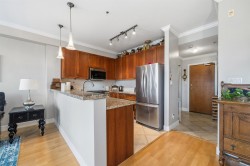 Experience Steveston living in this 2-bed + large den end unit at The Village. The versatile den is ideal as a home office, in-suite storage, or potential third bedroom. Enjoy the 381sqft west-facing deck perfect for creating a garden oasis. Its north-facing orientation looks out over the park with peek-a-boo views of the North Shore Mountains and helps keep the home cooler in summer. Features include a spacious open layout, hardwood flooring, a gourmet kitchen with ss appliances and granite counters, and a primary bedroom with spa-inspired ensuite. All just steps to scenic waterfront trails, boutique shops, and great restaurants — delivering lifestyle, comfort, and exceptional value in one of Richmond’s most vibrant and walkable neighbourhoods.