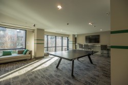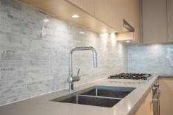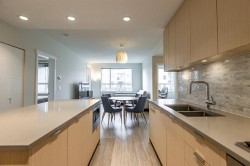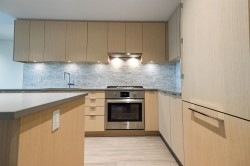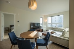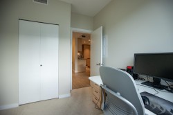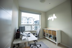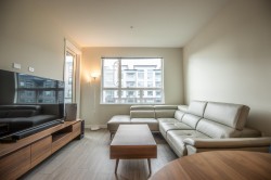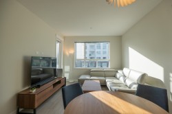 Welcome to Polygon's Berkeley House. Original Owner! This fabulous well layout 2 bedroom, 2 bath plus a den can be a home office or third bedroom. Features include 9 feet high ceiling, and central AC system. Open concept Chef's kitchen with large island, Bosch appliances, 5- burner gas range, full size fridge. Master bedroom can fit a king size bed with double sink ensuite bathroom. Balcony is facing a quiet greenery courtyard. Over 5,000 SF clubhouse including a fitness & yoga studio, social lounge, and meeting rooms. Convenient location, five minutes walk to Walmart, restaurants, shops, banks, public transit, and parks. BONUS! TWO PARKING STALLS and one locker. Do not miss it, call for viewing!