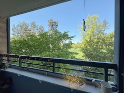 Customized kitchen design and many others! This condo has been RENOVATED with STYLE and loving care! Amazing floor-to-ceiling mirror wall, unique kitchen floor tiles, lighting fixtures and more! New cabinets, new bathtub tiles, new countertops, extra wide LED fireplace with open balcony for breaths of fresh air while you enjoy your morning coffee or evening wine in complete privacy surrounded by trees. Breathtaking shades of red and orange leaves in the fall season! Absolutely ELEGANT and RELAXING! Spacious living room and two bedrooms, two full baths, both fully renovated. STRONG concrete building, just a few steps to the park, library, Richmond Centre mall and skytrain. Come see it in person or watch the real-time walk-through video!