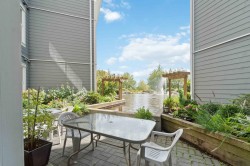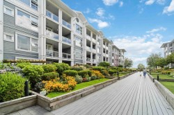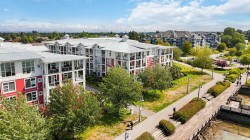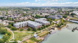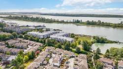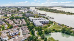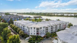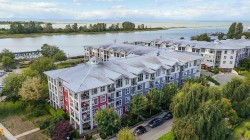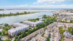 Experience waterfront living in the heart of Steveston South at the sought-after Copper Sky. This nearly 1,100 sq ft 2-bedroom plus den home offers views of the Fraser River and gives you direct access to the boardwalk and access into Steveston Village. Vaulted ceilings in the living area, 9-foot ceilings throughout, and an expansive balcony create a bright, open feel. The open kitchen offers granite counters, gas cooktop, stainless appliances, and hardwood floors. With shops, restaurants, the Community Centre, and Village amenities just steps away, this home combines resort-style comfort with everyday convenience. 1 secured parking and 1 storage locker. This home is tenanted; No interior photos will be posted.