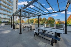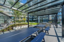 RARELY AVAILABLE Garden View CORNER Unit in RC centre! Beautifully designed 2 Bed 2 Bath home featuring a 300+ sqft oversized balcony that offers a private outdoor space with the feeling of a single house backyard. Quietly situated in a corner location facing the garden, this home provides excellent privacy and peaceful living.Modern kitchen with Gaggenau & Bosch appliances, Stosa Italian cabinets, quartz countertops, and an L-shaped island layout perfect for entertaining. Functional split-bedroom design ensures comfort and convenience.Enjoy great building amenities-fitness centre, dance studio, lounges, music room, kids' play zone and guest suites. Unbeatable location - walking distance to Richmond Centre, SkyTrain, Minoru Park and the community centre.Everything you need is just steps aw