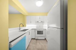 Welcome to The Residences by Bosa. This spacious, renovated 2 bed, 2 bath corner unit is well maintained and features a generous east-facing balcony. Updates include a new kitchen, updated bathrooms, tile, flooring, and fresh paint. Well-managed building with gym, sauna, ping-pong room, rooftop garden, and full-time caretaker. Prime Golden Village location steps to T&T, Olympic Oval, Minoru Centre, library, pool, Richmond Centre, and SkyTrain. Pet-friendly. One parking stall and locker included. OH Feb 8: 2-4PM