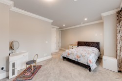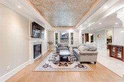 Beautifully maintained luxury home on a premium corner lot in the prestigious Lackner neighbourhood. Offering 5 bedrooms and 5 full bathrooms with exquisite craftsmanship throughout. Stone exterior with triple garage. Upstairs features 5 spacious bedrooms, including 3 en-suites with large walk-in closets, plus a balcony and private sauna/steam room.Ideal for entertaining with a media room featuring an extra-large 3D screen, wet bar, wine cellar, and access to a private BBQ patio. Includes a tranquil green tea house. Walking distance to top schools: McMath, Burnett, Stevenson & London Secondary, with easy access to French Immersion.Open house: Feb 8 Sunday 2-4pm