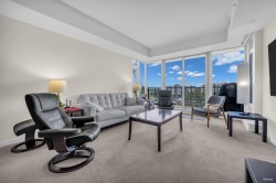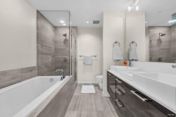End/Corner Unit – UNOBSTRUCTED VIEW. Original Owner-located in the Rivergreen 1A,this rarely available 2-bedroom + 3bath home has NEVER been tenanted & is kept in Immaculate condition. Rivergreen 1A is widely regarded as the best of the 6 buildings in the Rivergreen 1 community & opportunities to own in this exclusive 8-storey building are rare. Enjoy the convenience of a garbage chute on your floor,24/7 concierge service for enhanced security & seamless package delivery & a wide array of premium amenities: party room with BBQ,2 music rooms,3 study rooms w/ WiFi, theatre, golf simulator,pool,sauna,steam and a fully equipped gym.Outdoors embrace an active lifestyle with riverfront walking,running & biking.The building is EV-ready and offers WiFi access throughout the parkade & common areas.