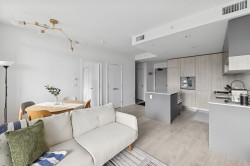This stunning 794 sf condo (Tower F) has an exceptional layout with bedrooms on each side of the living room, an open concept kitchen with island and 2 full bathrooms. An additional 243 sf south-facing balcony is perfect for expanding your living space. Brand new A/C unit featuring SxS appliances, Gaggenau gas cooktop, 9’ ceiling, SxS insuite laundry, Google Nest thermostat, heated ensuite bathroom floor, & 1 EV parking stall. Top quality amenities include concierge, Sky Gardens, co-working space, fitness facility, entertainment lounges, private music rooms, pet amenities, guest suites & more. Easy access to Brighouse SkyTrain station, Aquatic Centre, Minoru Park, Richmond Centre, & Richmond Secondary School (IB program). Open house: Jan. 31st 2pm to 4pm and Feb. 1st 2pm to 4pm.