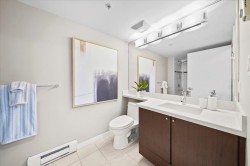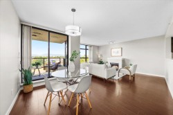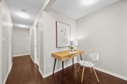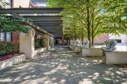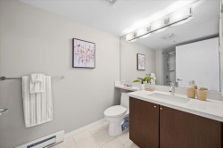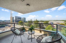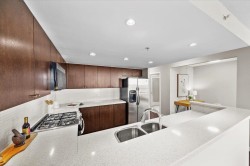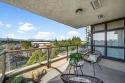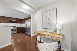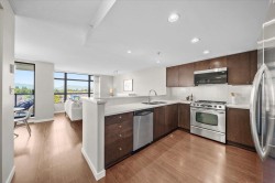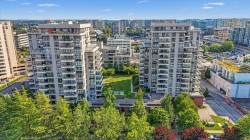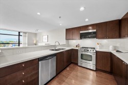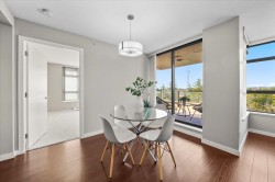 Welcome to Prado by Appia Developments. This bright corner unit offers unobstructed mountain views and highly functional layout. 2 bedrooms and open den, 2 bathrooms, and 2 parking (tandem) and storage locker. Freshly updated with new interior paint and new bedroom carpeting. The kitchen features Caesarstone countertops, stainless steel appliances, and laminate wood floors throughout the main living areas. Amenities include concierge, guest suites, access to Electric Vehicle charging stations exercise center, sauna, steam room, and party room. Unbeatable convenience - across from Lansdowne Center and steps to Canada Line (Lansdowne Station); groceries, restaurants, and recreation at your doorstep. Quality concrete high-rise in a super central location - move in ready and easy to show.