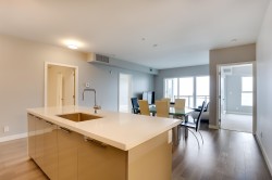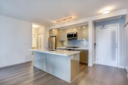 Rare penthouse-level 3 bed + 2.5 bath home with over 1,200 sq ft of living space and an outdoor deck with Fraser River views. Features AC, 9’ ceilings, engineered hardwood floors, and geothermal heating & cooling. Spacious primary bedroom with ensuite and dual sinks. Two additional bedrooms share a Jack-and-Jill bathroom. Open-concept kitchen with eating island and Bosch & Fisher & Paykel stainless steel appliances. Includes 2 parking stalls. Amenities include indoor pool, hot tub, fitness centre, gardens, and dyke trails nearby. Quick access to Bridgeport SkyTrain, Costco, YVR, and Vancouver.