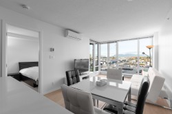 Immaculate & air-conditioned 1 bedroom concrete home that features totally open views to the north shore mountains with dramatic floor to ceiling windows! This very lightly used, vacation home offers an open gourmet kitchen, quartz countertops, stainless steel appliances, gas cooktop, wood flooring, insuite laundry, 523 SF of spacious living and a great north-facing balcony off of the living room. Located in Tower D of the Quintet community, this home enjoys access to 2-acres of serene rooftop gardens, indoor swimming pool, hot tub, sauna, gym, yoga studio and party room. Super quiet, yet amazingly close to the Skytrain Station, buses, Lansdowne Mall, Price Smart, restaurants, banks, community centre & all the conveniences of No 3 Road. A must see & ready to move!