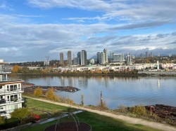 Welcome to this penthouse level 2 bed & den(or 3rd bed), 2 bath west facing home offering breathtaking views of Fraser River, Mtns. & City Skyline. Enjoy vibrant sunsets from your 2 private balconies or relax in open concept living & dining area w/ large windows that fill the space w/ natural light. Den area features custom built-ins, providing extra storage & functionality. Modern kitchen w/ premium finishes, spacious separated bedrooms, primary w/ ensuite & well designed layout create the perfect blend of style & comfort. 4 PARKING STALLS! Amenities incl. indoor pool, hot tub, fitness centre & social party rm. This master planned community has over 5 acres of parkland & dyke trails. Just steps to the Bridgeport SkyTrain, Costco, YVR Airport & quick access into Vancouver. Don't miss out!