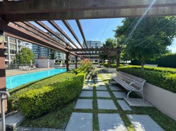 Acqua by BOSA, perfectly located in the heart of Richmond, just steps from the SkyTrain station. This bright and spacious 2-bedroom, 2-bath home features a functional layout with walk-in closet, two private balconies, granite countertops, stainless steel appliances, walnut hardwood flooring, and premium in-suite laundry. Quietly positioned on the south side of the building, it offers both comfort and privacy. Enjoy full amenities including 24-hour concierge and security, outdoor pool, hot tub, steam room, gym, rooftop garden and playground. Most Most convenient location, and close to everything you need.