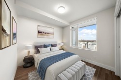 Welcome to Calla at the Gardens by Townline Homes. This luxurious, air-conditioned 3 bedroom, 2 bathroom corner unit offers a thoughtfully designed ~1,000 sq.ft. layout with desirable south-east exposure and two spacious balconies showcasing unobstructed mountain and open field views. The contemporary kitchen features stainless steel appliances, a gas cooktop, and quartz/granite countertops. Includes 1 secured parking stall, 1 bike locker, plus the option to rent an additional stall. Enjoy premium amenities including a fully equipped gym, indoor sports/basketball court, clubhouse, BBQ area, and serene gardens. Steps to Ironwood Mall, Save-On-Foods, schools, parks, transit, and quick Hwy 99 access. A fantastic opportunity. Open House: Saturday, January 31st (2-4 PM)