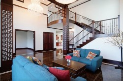 Stunning, luxurious, custom-built home in the heart of Woodwards. Over height ceilings with entry and family room double-height and open to above, TWO master bedrooms with custom ensuite bathrooms and sauna built-in, stainless steel Miele appliances, wok kitchen for all cooking needs, theatre/media room and wine closet, plus a wrap around paved patio and private balconies. Covered side-by-side garage and a gated yard for extra security. Make this your perfect family home with a luxurious touch.