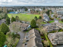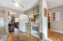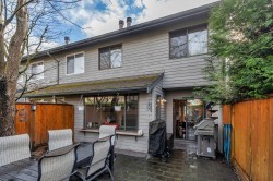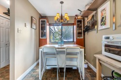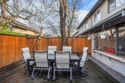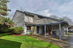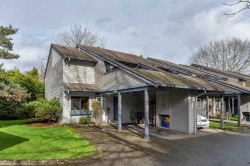 End unit two level 1470sf townhome in a family friendly quiet area! Main floor living, large living room with engineered wood floors opens onto dining area with sliding doors to private yard. Kitchen is spacious, window overlooking side yard and has adjacent eating area. Three bedrooms on upper floor, primary bedroom has a completely private south exposed deck, cheater ensuite via walk in closet (could be two bathrooms!). Main floor 2pc freshly updated, main second floor bathroom updated 2020-caesrstone countertop, soaker tub/shower. Private garden patio with newer fencing has north/west exposure- enjoy the sunsets! Lots of common green space,two parking stalls,one covered+ storage 5'x10'. Main fees $498/mo. Located across from McKay Elementary, steps to parks, amenities and transit!