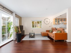 Welcome to this beautifully maintained 2-bedroom, 2.5-bath end-unit townhouse in the sought-after Trellaine complex. Facing South & East, this bright 2-level home features an open-concept kitchen, gas fireplace, smart home upgrades including thermostats throughout, private balcony, in-suite laundry, and a storage locker. Ideally located across from a park and next to Anderson Elementary & A.R. MacNeill Secondary, offering a family-friendly, walkable setting. Ample street parking on a tree-lined street plus 1 secure underground parking stall. Amenities include a clubhouse, gym, and playground. Steps to transit, schools, and shopping — a must-see.