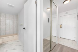 Welcome to Park Towers - Welcome to this beautifully renovated 1-bedroom park-side facing home. Updated in 2025, this bright and spacious unit features elegant hardwood flooring with overqualified underlay, a refreshed kitchen and bath, and a highly efficient layout with sweeping views of Minoru Park and the outdoor pool — a rare, tranquil and PRIVATE outlook that brings tranquility to your home within the busy city core. Located just steps from Richmond Centre, the Canada Line, Minoru Aquatic Centre, and the Richmond Public Library, this home offers unmatched urban convenience. Perfect home for any first time buyer, downsizers or investors! This TURNKEY property checks all boxes. 1 Parking and 1 Locker Included.