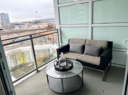 Brand new parkside deluxe 755 sq ft 1 bed + den home at Torino West. Unobstructed view of park and city. Central heating/cooling, full-size appliances, & laminate flooring. Convenient location with services, groceries, and restaurants all within walking distance and only one block from the Capstan Canada Line Station.
