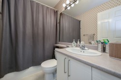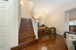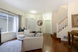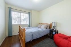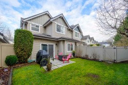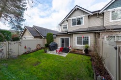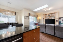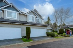 Show home quality shines in this beautifully maintained 1,600 sq.ft townhome built by Onni. Thoughtfully designed over two levels, it features laminate flooring throughout, a double car garage, & a highly functional family-friendly layout. The bright kitchen offers granite countertops, S/S appliances, & gas stove, opening to a cozy family room & dining area, while a separate formal living & dining space provides flexibility. Two skylights flood the home w/ natural light. Upstairs offers four bedrooms, including a spacious primary suite with ensuite including a soaker tub. Enjoy a fully fenced, south-facing yard & the convenience of a nearby shared amenity room w/ light exercise equipment. A warm, well-rounded home in a welcoming community. Proper notice required for showings.