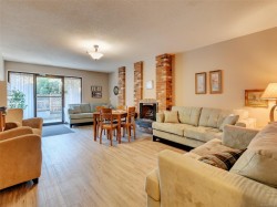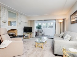 Welcome to The Hearthstone - a remediated 15 unit building at 3244 Seaton Street. Unit 101 is a two bedroom, one bathroom patio corner suite with a sunny south facing glassed-in sunroom giving more living space for an office, exercise room or hobby room. Living room has a fireplace with an decorative electric insert. In-suite laundry and lots of storage plus an additional separate storage locker and one parking spot. Great location close to Tillicum Mall, Pearkes Recreation Centre, major bus routes and all amenities. This quiet, friendly building is rentable (no short-term rentals), well-managed and pet friendly! Quick possession possible!