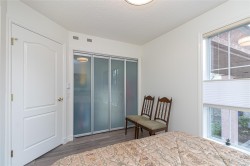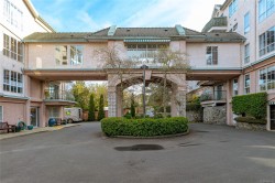 Bright 2nd Floor unit 55+ Bldg. Very nicely updated throughout incl. Vinyl plank flooring, completely renovated master bed. & cheater ensuite including, closet system with extra drawers. The bathroom has been updated with beautiful modern sink, tile & tub. Bright kitchen. Over sink window & redesigned pantry shelving unit. The kitchen cabinets have all been replaced with modern finishes with lots of storage. All windows floor to ceiling lighten the whole unit, & have been fitted with a modern blind system + screens. Building located across from shopping and services at Tillicum Centre incl. Save on Foods, Silver City Movie Theatre and much more. The is a corner suite on the backside of the building and is very quiet. No Parking space but wait list available.Over 55 bldg. If you use public transport or enjoy walking/riding this suite is for you. View it Today! All measurements approx. Buyer to confirm all importan info.