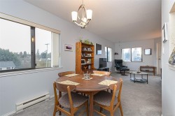 SOUTHWEST FACING CORNER TWO BEDROOM. Overlooking Swan Creek Park with southwest exposure on the quiet side of the building. Enjoy birds and sunsets from the newly refurbished sundeck. Bright kitchen with updated appliances, a skylight and a pass through. Walk-in shower, in-suite laundry/storage room plus separate storage on the same level. Heat, hot water and natural gas included in the strata fee. This is a 55+,pet friendly well run building. The building also has exercise/games room, workshop, bike storage and a lounge area. The location is close to buses and amenities. Walking distance to shopping via trails, the Galloping Goose and roads. Easy access to all major arteries.