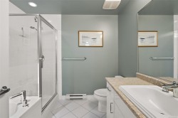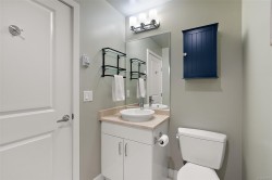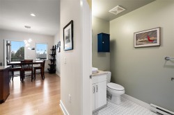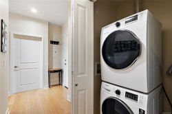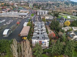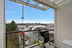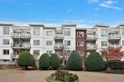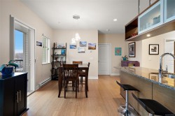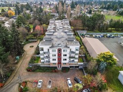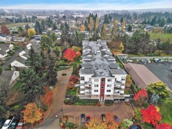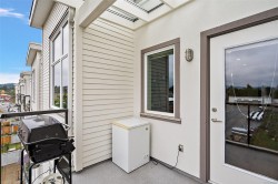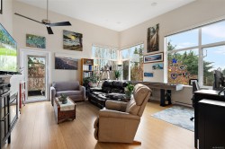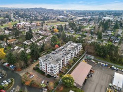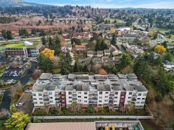 Make this top-floor corner 2-bed, 2-bath unit your Royal Oak oasis. 13 ft vaulted ceilings and 1189 sq ft open concept set it apart from the rest. Bathed in light by oversized South and West facing windows with unobstructed sunset, mountain and park views. The expansive living area with fireplace separates the bedrooms and flows to 2 large decks for relaxing, entertaining and BBQs. Kitchen has updated S/S appliances, granite counters, roll-out shelves in walnut cabinets & bamboo floors that flow to spacious living & dining areas giving an inclusive vibe. The large primary suite’s vaulted ceilings, 2 large closets & 4pc ensuite with soaker tub is luxurious. A 3pc bathroom and 2nd bedroom with wall-bed allows for family, guests & office. Updated washer/dryer, hot water tank, carpet in bedrooms, screens on doors & windows. 2 secure parking spots & storage. Non-smoking building, pet friendly, rentable, no age restrictions & EV charging. Shopping, rec-center, walking trails at your door.