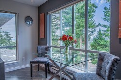 Discover an executive penthouse nestled in the forest, perfect for those seeking a harmonious blend of West Coast charm and European sophistication. Experience an executive penthouse in the forest that seamlessly blends West Coast charm with European sophistication. This exceptional unit boasts stunning ocean and mountain views, featuring a unique interior with high-end renovations. Enjoy a custom walk-in closet, a kitchen with Italian neolith and quartz countertops, a high-end Murphy bed/office set, and pot lights throughout. Electric skylights provide a refreshing breeze, while luxury appliances, Italian ceramic floors, and silk blend carpets add modern elegance. Greet local eagles soaring by as you dine. New roof. Convenient trails and amenities are around the corner—schedule your showing today!