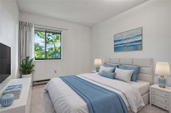 New Price! Welcome home to this bright, top floor condo in the popular Cedar Shores Complex. This spacious two bedroom unit includes a large primary bedroom with ensuite, open full-sized kitchen, in suite laundry, wood burning fireplace and a peaceful sunny closed in deck connecting you to nature. Set in a resort style complex which is centrally located and set by the waters edge with beautifully landscaped grounds offering a private waterfront picnic and barbeque area, swimming pool, hot tub, party room, and walking trails. Paddlleboard into town from your own backyard or get a garden plot at the community garden right next door! There is also an on site caretaker in this well managed complex. Purchase as your home, or have it as an investment. Walking distance to shops and amenities, rec centre and library and easy bus routes, this home is sure to please.