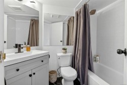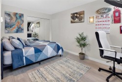 This is 550B - a top floor and renovated 1bed 1bath condo perfect for first-time buyers, downsizers, or investors. Royal Oak Estates is a well-managed, rental-friendly complex with no age restrictions, parking included, and an ALL-IN strata fee that covers electricity and water, a rare and convenient offering. The suite has an efficient layout and underwent extensive upgrades in 2025, including a Samsung heat pump w/ AC, updated Samsung s/s kitchen appliances, new kitchen cabinets/countertops, refreshed bathroom w/ tile flooring, bath fitter, vanity, and toilet, new laminate flooring and baseboards throughout, and fresh paint. Common laundry is located on the same floor, along with a separate storage locker. The location is highly convenient, close to Royal Oak and Broadmead shopping, Elk/Beaver Lake trails, Royal Oak Bus Exchange, and the Commonwealth Recreation Centre. Downtown Victoria is an easy commute by car or bus w/ quick highway access.