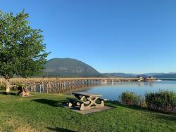 Welcome to Hillside Terrace, a neighbourhood of townhomes, with unit #5 offering 1567 sq/ft of tastefully designed living space, complemented by driveway parking and plenty of garage space. The open concept main level features plank flooring throughout, and contains the living room, dining area, powder room, and kitchen with shaker-style cabinets, quartz counters, and an 8’ sit-at island with a spot for your beverage fridge. Just off the kitchen, enjoy views of the lake, mountains and the city lights from your 15'x6' deck-a great spot for your BBQ and some chairs to relax. Upstairs, the plush carpeting introduces the primary bedroom with an ensuite, a second and third bedroom, and the main bathroom. On the lower level you can step out to your backyard which is privately fenced and includes artificial turf and patio space (Low maintenance=low strata fees). For additional space, you have a flex-room that awaits your plan: This is where you could have a media room, an office, he/she-cave, a storage room, or leave it open to accompany motor toys or a 2nd vehicle, and save $4000. Sound-proofed, gas heat, central air, window coverings, LG stainless fridge, gas range and dishwasher and a white Whirlpool stacker washer and dryer all included for exceptional value! Centrally located, to schools, recreation/events, shopping, restaurants, theatres, pet friendly. Purchase early to pick out some of your finish colours, like light fixtures & interior paint colour.