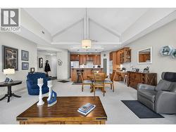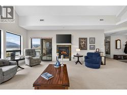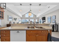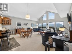 Welcome to McGuire Place (55+) — a rare top-floor penthouse with stunning panoramic views of Shuswap Lake. This spacious 2 bedroom, 2 bathroom home offers an open-concept layout with soaring vaulted ceilings, massive picture windows, a gas fireplace, and in-floor radiant heat throughout. The gourmet oak kitchen features a breakfast bar and ample cabinetry. The large primary bedroom includes a full ensuite and walk-in closet, complemented by a second bedroom, additional bathroom, in-suite laundry, and generous storage. Enjoy the expansive covered deck with gas hookup—perfect for relaxing or entertaining while taking in the lake views. This quiet, secure building offers an elevator, underground heated parking with two secured stalls, and is well maintained. Ideally located across from McGuire Lake, within walking distance to downtown, close to all amenities including medical offices, and just two blocks from the hospital. Strata fees of $736.44/month include management, insurance, landscaping, maintenance, contingency reserve, hot water, sewer, water, and garbage removal. Pet restrictions allow two cats or one dog and one cat (dog not to exceed 20” at the shoulder). Don’t miss this exceptional opportunity! (id:27)