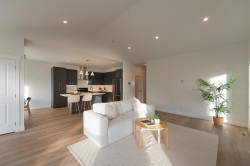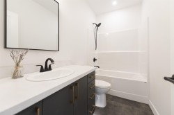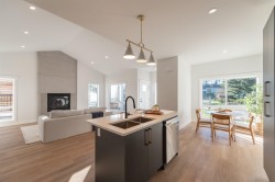 Brand new 3-bed, 2-bath rancher offering bright, easy coastal living. Featuring 9-ft ceilings, oversized windows, and an open layout, the home feels airy and inviting throughout. The kitchen boasts quartz countertops, stainless steel appliances, contemporary cabinetry, and an island for gathering. A stunning floor-to-ceiling fireplace anchors the living room, adding warmth and style. The primary offers a spa-inspired ensuite with double vanity and a walk-in closet. Enjoy natural gas heating, heated bathroom floors, a double garage, and a fenced yard. Newly completed concrete driveway, entry path, and rear patio pad are perfect for outdoor entertaining. Minutes to town and two blocks to the beach. Crafted with quality construction and backed by a 2-5-10 New Home Warranty.