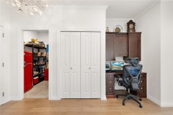 Bask in sun from this southwest-facing penthouse, where ocean, mountain, & city vistas unfold from your private balcony—complete with a natural gas BBQ hookup for effortless outdoor living. Welcome to the Watertower, a boutique, professionally managed building in the heart of Sidney. Just steps from beloved restaurants, quaint shops, & a short stroll to the waterfront & fishing pier, this home delivers the best of walkable coastal living with quick access to the ferries & airport. Inside, nearly 1,500 sq. ft. of bright, sophisticated space awaits. The open-concept layout is ideal for entertaining, featuring hardwood floors, a cozy gas fireplace, & a gourmet kitchen. Two spacious bedrooms each boast their own ensuite with in-floor heating, while the primary suite has a generous walk-in closet. A small office (or in-suite storage area) & a separate locker add appreciated versatility. Stylish, sun-soaked, & superbly located. It’s a lifestyle.