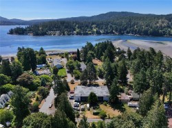 Welcome to Ocean Edge! Proudly introducing a top-floor unit only steps to the beach and Billings Spit where you can experience whale watching, eagles soaring & an abundance of serene wildlife & tranquility. Nestled along the rugged West Coast. Enjoy the fresh ocean breeze from your private covered deck overlooking serene gardens and foliage with bonus storage area. This charming unit offers a cozy wood burning fireplace with beautiful wood-panelling backsplash, Built-in book shelves, Murphy bed with bonus storage shelves, In-suite laundry with storage area and 4-piece bathroom. Sooke BC is a Sea side community that delivers the full West Coast islander experience! Home to some of Vancouver Islands most desirable adventures including world-class fishing, the iconic Whiffin Spit, beaches, hiking & so much more!