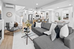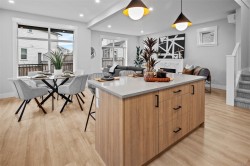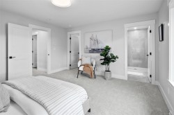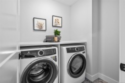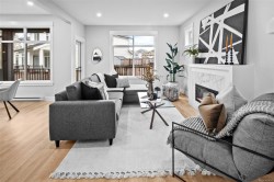 This beautifully crafted Tofino 2 home in the sought-after Woodland Creek community offers unbeatable value and design. Built by award-winning SC Smith Building Co. and thoughtfully styled by Nygaard Design, it blends classic West Coast architecture with modern-day comfort. Inside, you'll find a bright, spacious kitchen featuring soft-close cabinets, quartz counters, a walk-in pantry, and premium stainless steel appliances. The open-concept layout flows from the living area—complete with a sleek linear fireplace—into a welcoming dining space, perfect for entertaining. High-end finishes, designer lighting, heated tile floors, and an energy-efficient ductless heat pump provide year-round comfort. Located on a quiet, no-through street with quick access to the local park, elementary, and middle schools. Eligible Canadian buyers may qualify for a PTT exemption when purchasing as a primary residence. Interior photos shown are of a similar, reversed layout. Ready for occupancy!