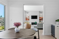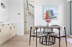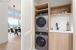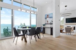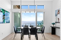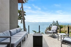 Experience unmatched coastal living in this west coast contemporary waterfront home along the stunning Juan de Fuca Strait. Completed in 2024, this 2,866 sq. ft. architectural residence features three spacious bedrooms, four bathrooms, and a versatile den perfect for a home office. Offered fully furnished (optional), it’s one of only seven custom oceanfront homes in Sooke’s first-of-its-kind luxury development. Interiors by Jenny Martin Design feature shiplap accents, panel-ready appliances, and refined millwork for ample storage. Enjoy an open-concept layout with ocean views, a designer kitchen, and fireplaces that add warmth and ambiance throughout. Dual laundry areas offer added convenience, while the advanced heating and cooling system provides individual climate zones. Whether as a full-time residence or a turn-key retreat, every detail is thoughtfully curated for coastal elegance and modern comfort.