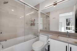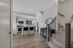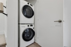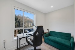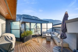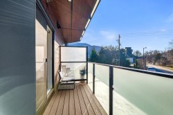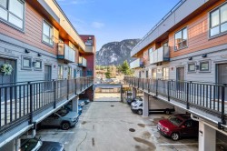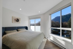 WELCOME TO LIZZY BAY — a boutique collection of 29 modern city townhomes in the heart of downtown Squamish. This bright 2-bedroom corner home offers exceptional outdoor living with a generous rooftop patio plus two additional balconies—ideal for entertaining, relaxing, and enjoying mountain views and night skies. The main level features high ceilings, an open-concept layout, and a well-appointed kitchen with an island, while bedrooms are thoughtfully positioned on the upper level with direct access to the rooftop deck. Gated parking, remaining New Home Warranty, and two storage lockers included, and a custom-built mountain bike storage on the deck. Steps to shops, markets, schools, the library, the estuary, and endless trails—urban living meets outdoor adventure.