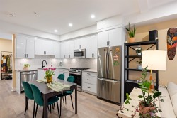 Welcome to this stylish contemporary 3-bed, 2.5-bath townhouse at Lizzy Bay, located in the heart of downtown Squamish. This thoughtfully designed home features a main-level den/flex space with generous storage, three spacious bedrooms upstairs, and an incredible rooftop patio with 360-degree mountain views. The kitchen boasts stone countertops, a gas range and ample cabinetry. Enjoy stunning views of of the surrounding mountains from your rooftop deck. Includes 1 parking stall, and 2 storage units, this home is steps from downtown restaurants, amenities, trails, and world-class climbing. Pets and rentals are welcome!