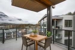 Brand-new top-floor, corner 3-bedroom home located in Squamish’s newest community, Redbridge. Flooded with natural light thanks to the 13' clerestory ceilings, this bright and modern residence features an open layout, spa-inspired bathrooms, oversized windows, and stunning mountain views. The luxury Italian kitchen by Inform includes a gas cooktop, pull-out pantry, and integrated refrigerator. Additional features include the upgraded A/C package, a private storage locker with ample space for bikes, skis, and more, plus generous size balcony to expand your living space and elevate your day-to-day. Redbridge offers outstanding amenities—a state-of-the-art fitness and wellness centre, bike room, co-working spaces, and beautifully landscaped outdoor areas—all just steps from Downtown Squamish.