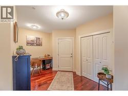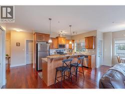 Welcome to Victoria Place! This home features a fabulous northeast facing second floor corner condo in the heart of downtown Summerland, offering exceptional walkability to shops, cafes, restaurants, and amenities. The bright open concept floor plan includes 2 bedrooms and 2 full bathrooms with excellent separation, ideal for full time living or a lock and leave lifestyle. The kitchen includes granite countertops, updated stainless steel appliances, and island seating, flowing seamlessly into the living and dining areas. Highlights include 9 foot ceilings, engineered hardwood flooring, in-floor radiant heat, ductless cooling, and a cozy electric fireplace. Enjoy the spacious wrap around entertainment deck, plus 1 secured underground parking stall and storage locker. No age restrictions; rentals and pets allowed with minor restrictions plus low strata fees! (id:27)