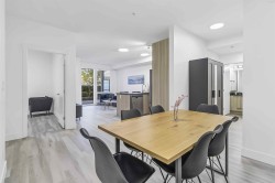 RARELY AVAILABLE GROUND-LEVEL CORNER UNIT — This spacious 2 BED, 2 BATH home is the LARGEST IN THE BUILDING and features a generous WALK-OUT PATIO just steps from GUILDFORD VILLAGE SHOPPING PLAZA, home to Save-On-Foods, pharmacy, child care, dining, and more. Stylishly UPDATED with modern LED lighting, 10' high CEILINGS and WIDE PLANK VINYL FLOORING. Ideally situated with a BUS STOP at your doorstep, beside HAROLD BISHOP ELEMENTARY, and minutes to GUILDFORD SECONDARY, major HIGHWAY ACCESS, scenic NATURE TRAILS, and nearby PARKS including Tynehead Regional Park. PETS & RENTALS ALLOWED, making this a perfect home or investment in a highly walkable, convenient location.