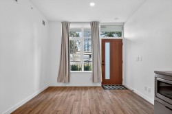 Welcome to University District North by BOSA - a thoughtfully designed community in the heart of Surrey City Centre. This rare ground-floor 1 bed, 1 bath home offers convenient direct access to the outdoors & the lobby, plus a spacious 118sqft private patio. The modern Italian kitchen features wood-grain cabinetry, premium appliances, and stone countertops. Enjoy year-round comfort with A/C and HRV. 1 parking included. Residents benefit from concierge and package locker, plus access to 23,000sqft resort-inspired amenities featuring lounges, bike pavilion, fitness centre, yoga studio, co-working spaces, meeting rms, children' s play areas, rooftop pool, party rm w/ full kitchen, entertainment rm, and more. Close to Surrey Central SkyTrain, Central City Mall, SFU, City Hall, and Civic Plaza.